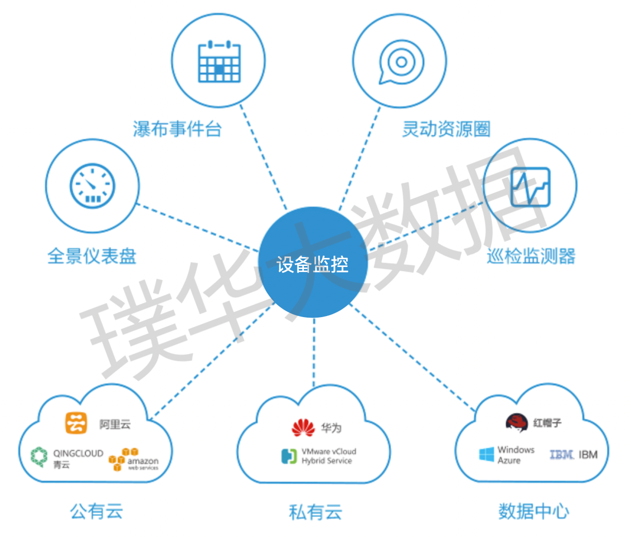 设备监控管理提供了一键部署的采集机制、丰富可扩展的监测指标,涵盖了传统与互联网技术的监测指标,实现了对操作系统、中间件、数据库、虚拟化、基础设施服务器、基础服务等IT环境的监控。针对细粒度指标,达到了秒级的数据采集及数据分析和告警。使用全景仪表盘、瀑布事件台、灵动资源圈以及巡检监测器等丰富的数据可视化手段,提升运维的易用性、实用性以及准确性,降低运维的成本和难度,保障IT环境的稳定健康。