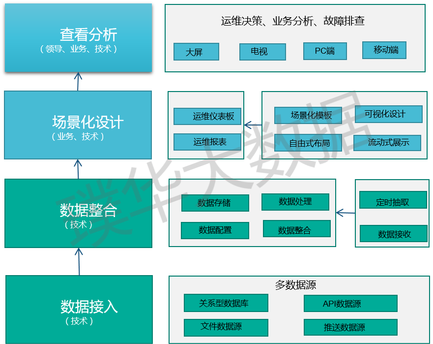运维数据分析是一个作用于将整个运维监控数据、业务数据、运维协同等串联起来,并能全局呈现态势的产品。它通过对运行监控、资源状况、运维协同的多维度数据汇总展现。形成定期性汇报,让运维管理者实时了解运维态势,更好的做运维决策;让运维服务人员实时跟踪业务运行状况,更快的做业务响应;让运维技术人员全面了解故障,更准确的做故障定位与处理。