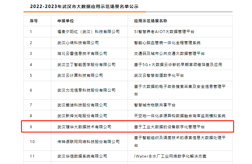 璞华大数据“基于工业大数据的设备数字化管理平台”入选2022-2023年武汉市大数据应用示范场景