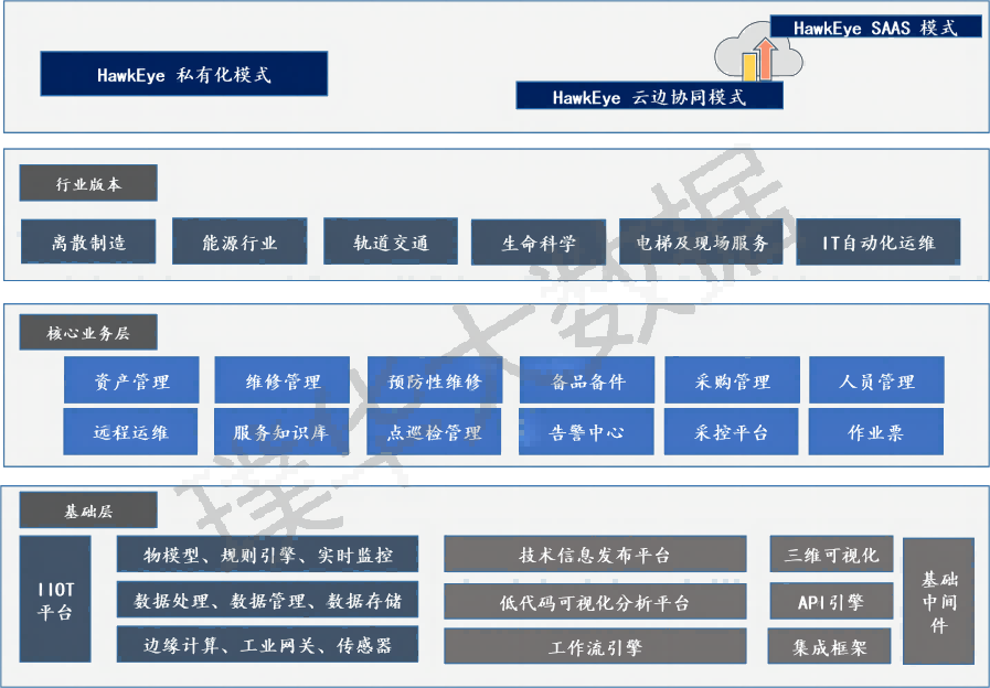 公司自主研发了HawkEye设备数字化管理平台、物联网大数据平台、满足ITIL4的一体化IT运维平台、项目管理平台、交互式电子技术手册平台、安全作业票管理平台、维修MES生产管理系统等,为企业的数字化转型赋能。