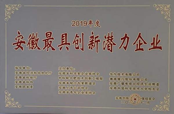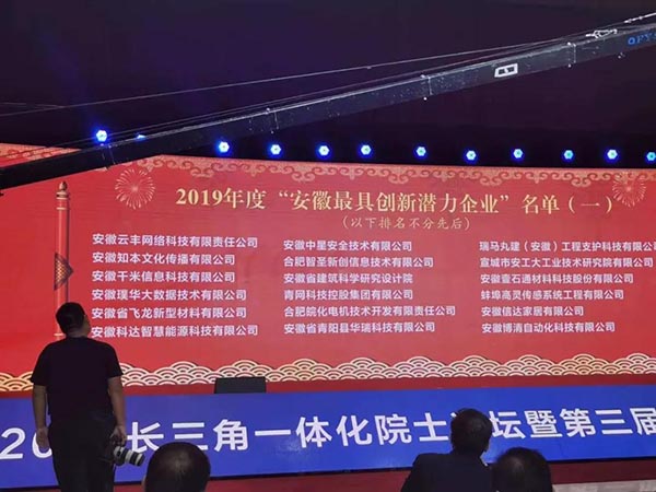 2020年11月7日,以“科创长三角 建功新时代”为主题的2020长三角一体化院士论坛暨第三届安徽院士创新发展论坛在合肥举办,会上揭晓了由安徽省科学家企业家协会、中科院合肥技术创新工程院等8家单位联合主办的“安徽最具创新潜力企业”等奖项评选活动的获奖名单。经过安徽省科学家企业家协会、中科院合肥技术创新研究院、安徽省院士专家联谊会、安徽上市公司协会等多家组织和专家的严格评比、层层筛选,安徽璞华大数据技术有限公司成功获得2019年度“安徽最具创新潜力企业”荣誉称号。